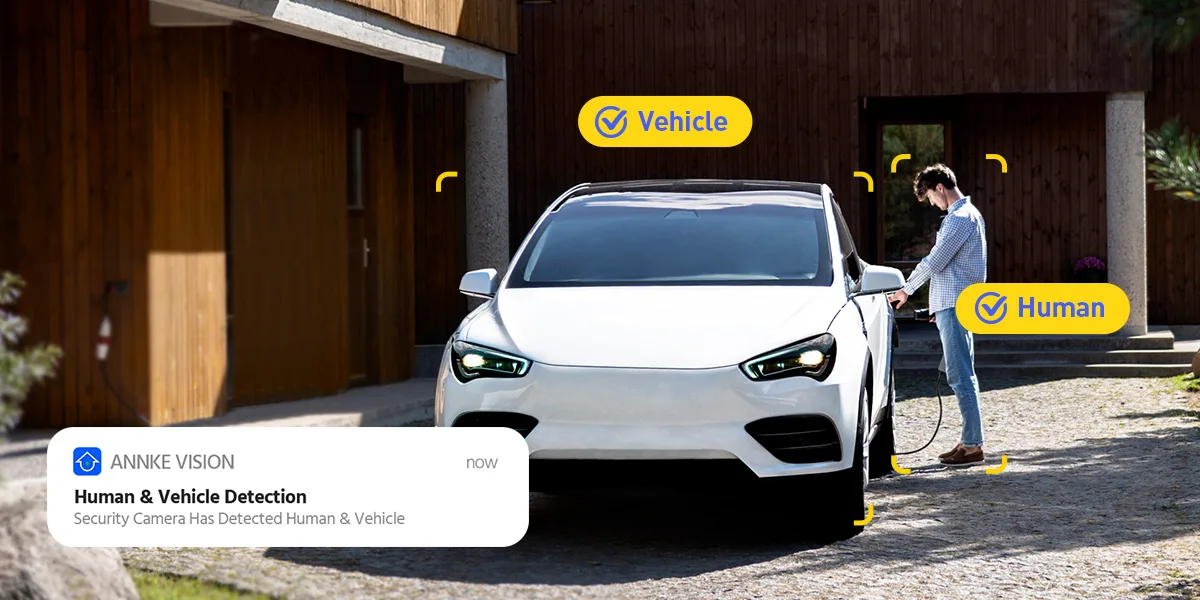 When triggered by someone's car: the infrared light turns off, the warm light turns on and turns into a color picture.