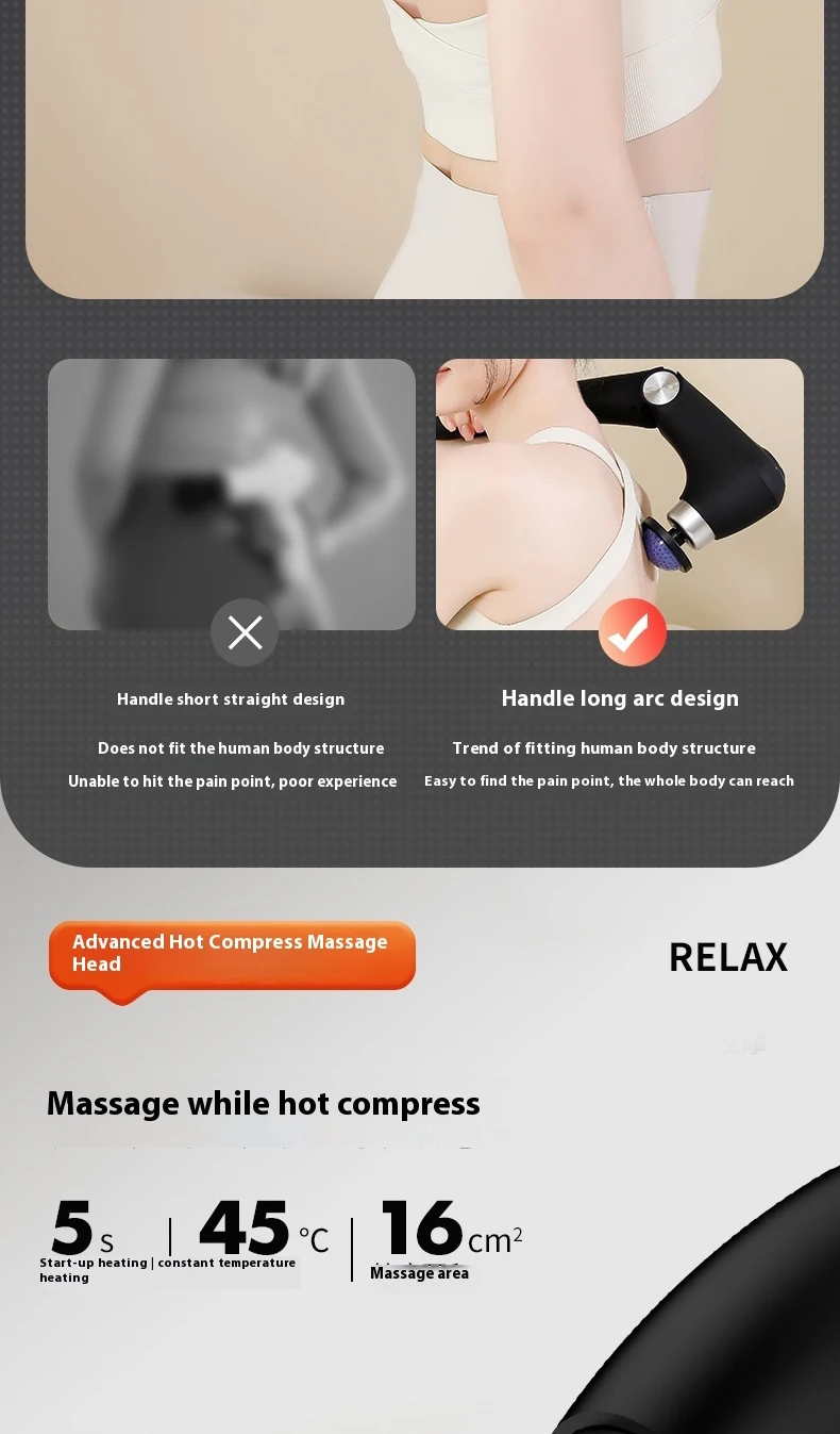 Powerful power, deep relaxation: High-performance motor, strong power directly into the deep muscles, effectively relieving muscle fatigue and stiffness.