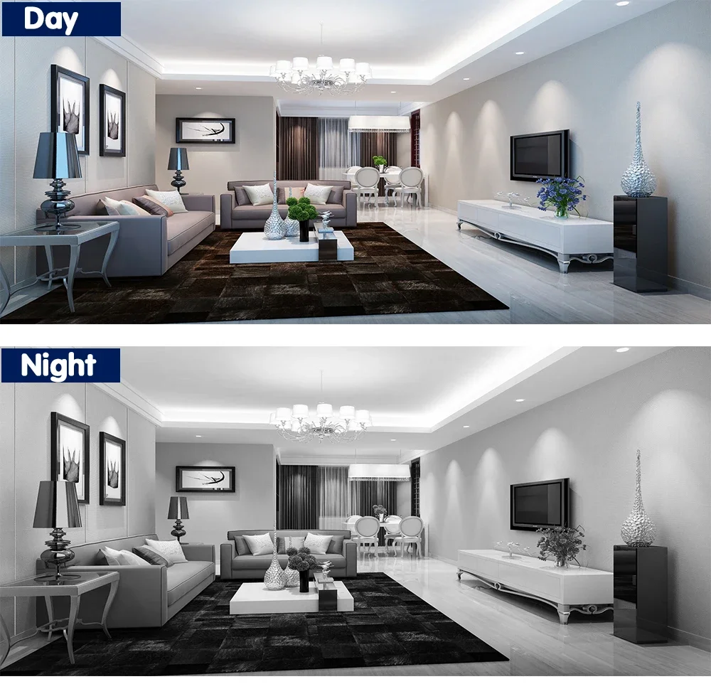 The smart IR-Cut filter switches automatically between day and night to reduce color cast in day time and enhance image brightness at night making sure you can get vivid surveillance footage from dawn to dark.