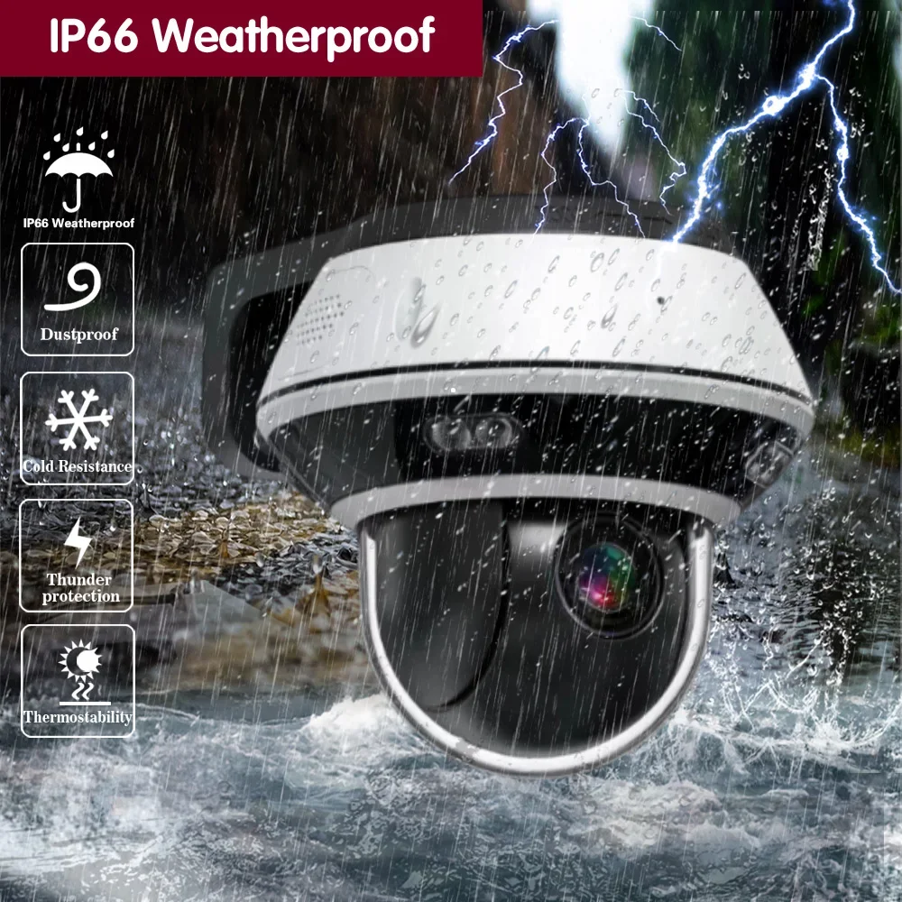 Use them as outdoor cameras or indoor cameras, as they are built tough towithstand whatever the weather throws as then:rain,snow,dust and hot days .with IP66 weatherproof rating ,and cables threaded through the stand for extraprotection ,ensure you can reply on their performance,day in ,day out.Our camera adopts heavy-duty metal housing,professional IP66 weatherproof,Providing stable performance both indoor and outdoor.