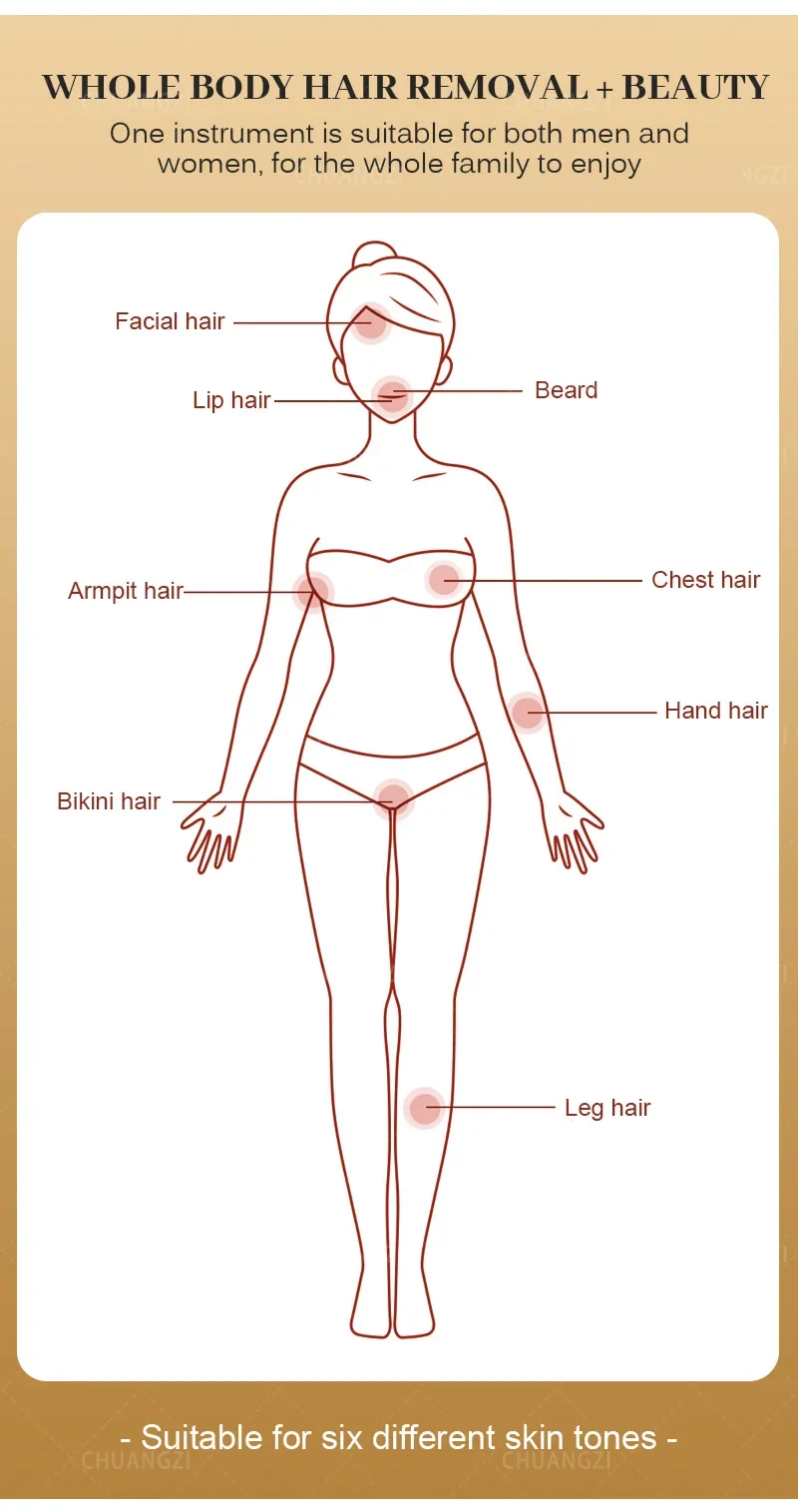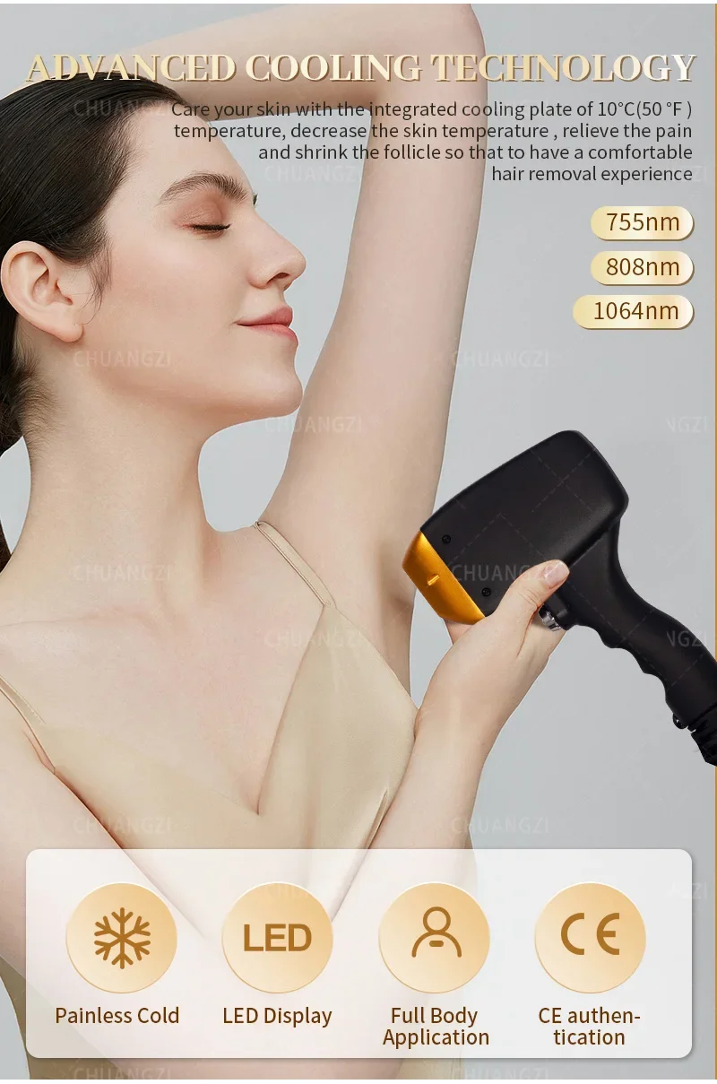 2. The best 3wavelength: The 808nm near infrared of Terminator Hair Removal System is best for absorbing melanin so that can effect in different parts and hair follicles and reach to removing any hair effectively.