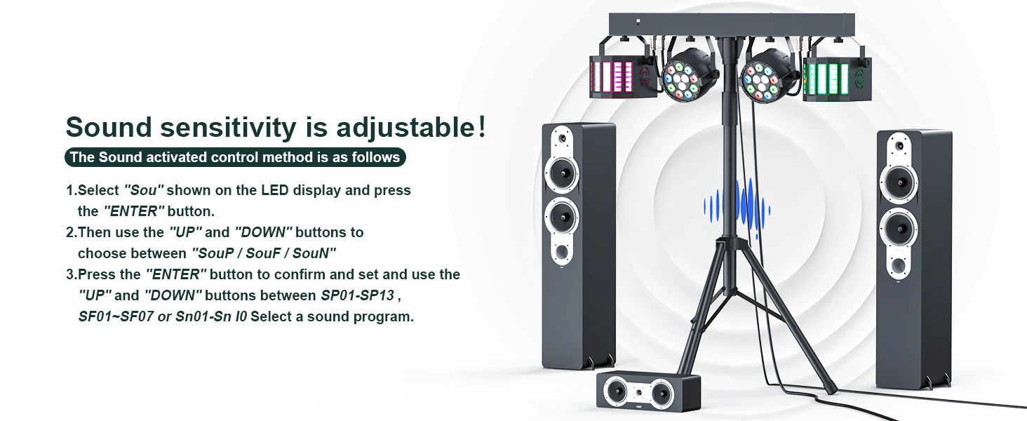 3. Press the "ENTER" button to confirm and set and use the "UP"and "DOWN" buttons between SPO1-SP13 , SF01-SF07 or Sn01-Sn I0 Select a sound program.