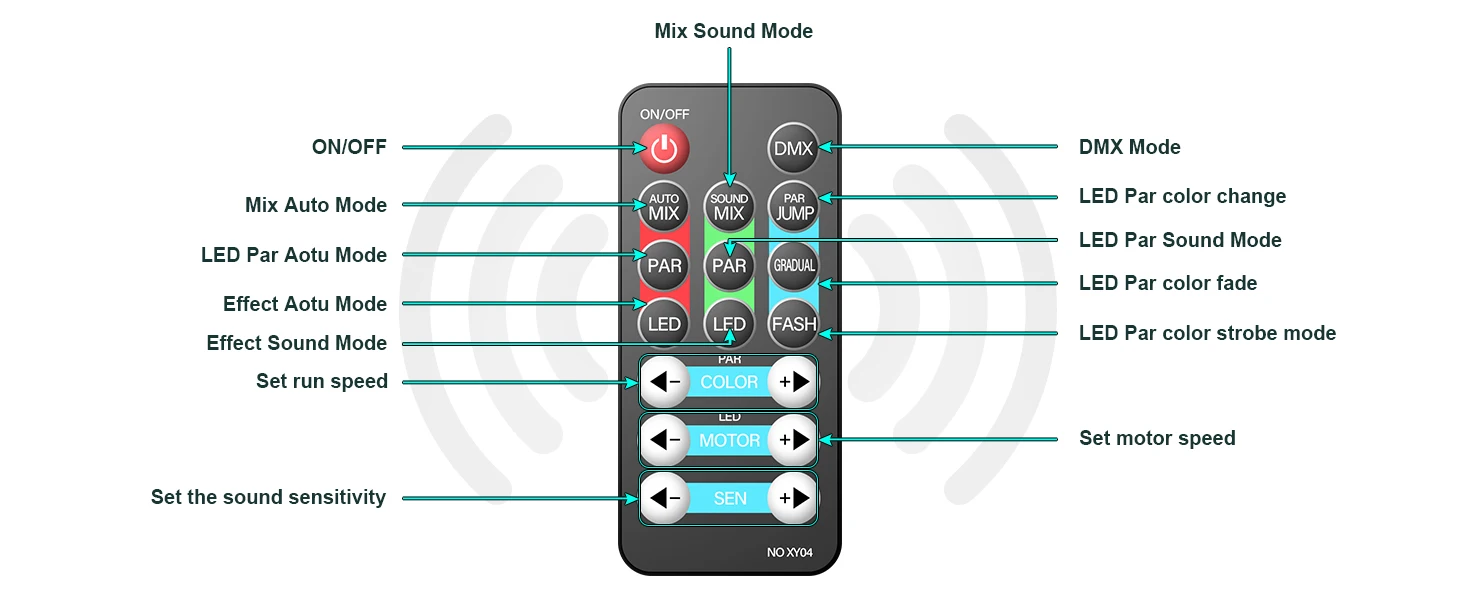 Automatic mode, Sound control mode, Remote control mode, Master-slave mode.