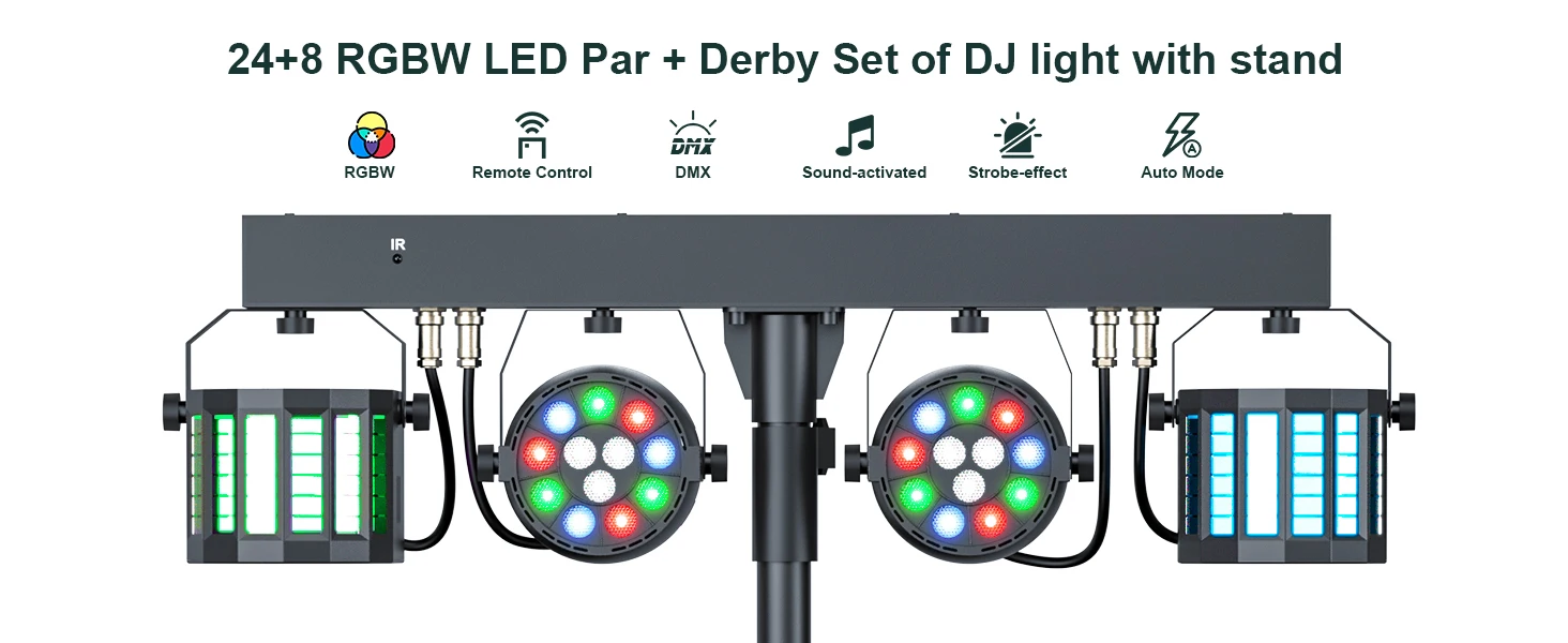 24+8 RGBW LED Par + Derby Set of DJ light with stand