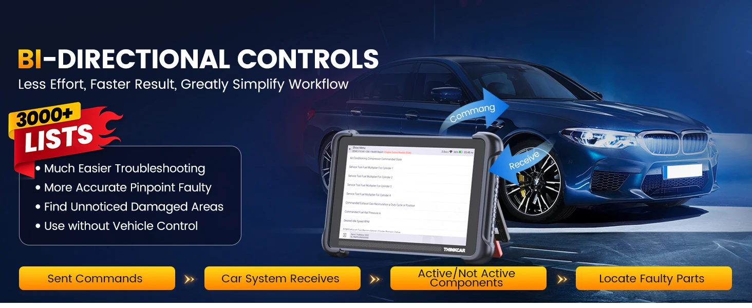 Active testing is one of the most useful features in automotive maintenance and greatly improves mechanic efficiency. THINKCAR 689BT bidirectional scanner can send action commends to vehicle sub-systems or components for active test without using vehicle controls. It can perform various tests such as: EVAP Test, Fuel Trim Reset, Injector Buzz Test, Window/ Mirror/ Door Lock Test, Pump and Value Tests, etc. Get functions from "Diagnose>Car Model>System>Active Test".