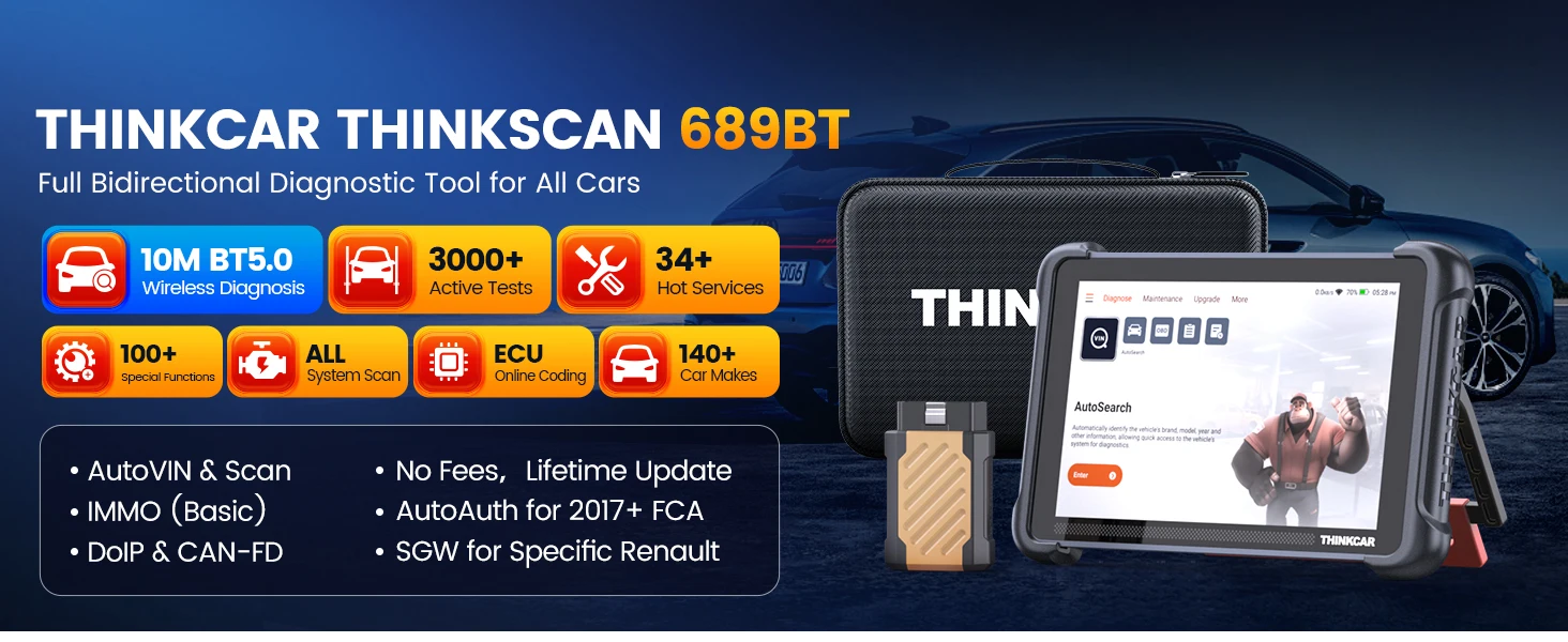 THINKSCAN 689BT is a comprehensive scanner automotriz, supports 28 languages, 140 worldwide car brands , like passenger cars, 12v pickup, hybrid vehicles and suvs (1996-2024). AutoAuth for 2018+ FCA cars . CAN FD & DOIP protocols boost 2X faster communication. Packaging configuration gateway accessories, saving you 60 bucks. It is an fantastic choice for DIYers, repair store. For any issues,ask for support from THINKCAR