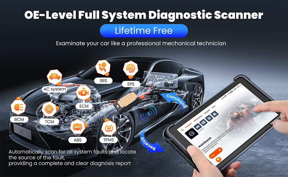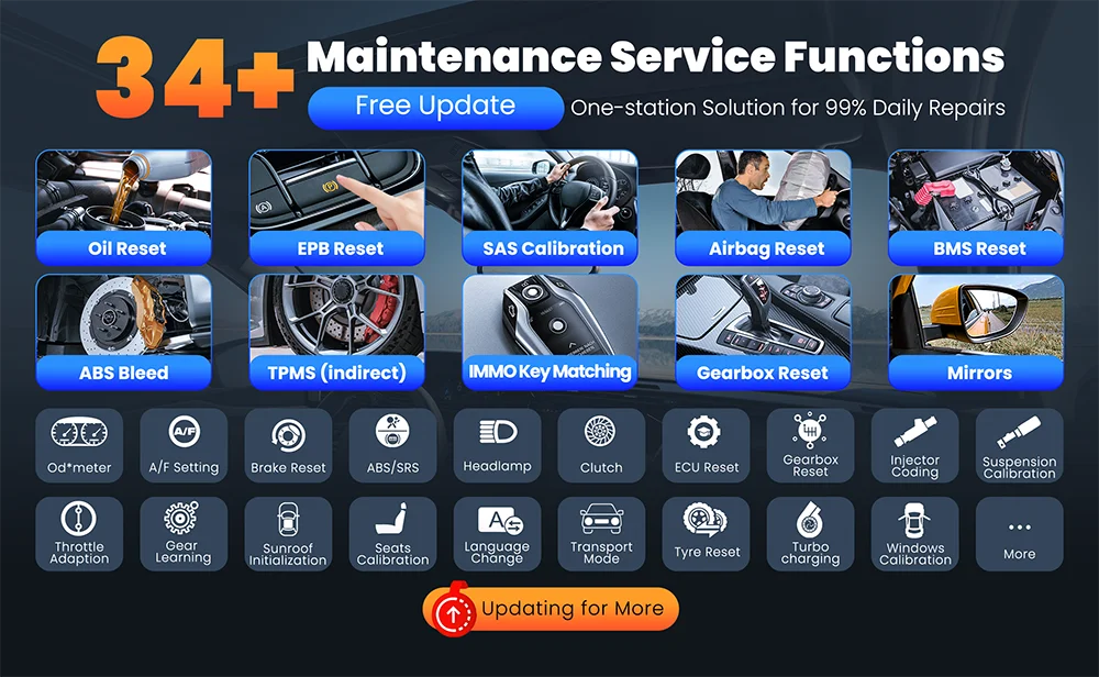 this car diagnostic device has 34 service functions (free lifetime). These include oil lamp reset, EPB, BMS, SAS, ABS, injector coding, transmission adjustment, clutch, ECU reset and turbo reset. These reset functions can quickly help you perform various maintenance work on vehicle systems. ThinkScan 689BT obd2 scanner is constantly expanding with new reset features. Please check compatibility before purchasing.